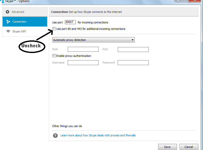 4) Uncheck option – Use port 80 and 443 for additional incoming connections