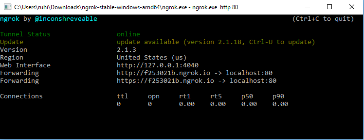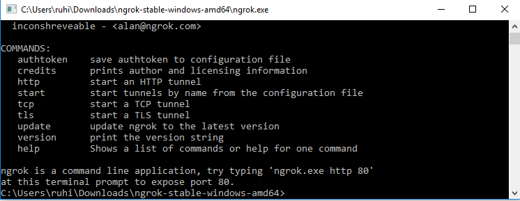 3) Try typing ngrok.exe http 80 at this terminal prompt to expose port 80